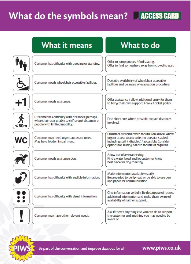 Not all disabilities are visible, and many people find it difficult to explain their needs repeatedly. The Access Card helps to: